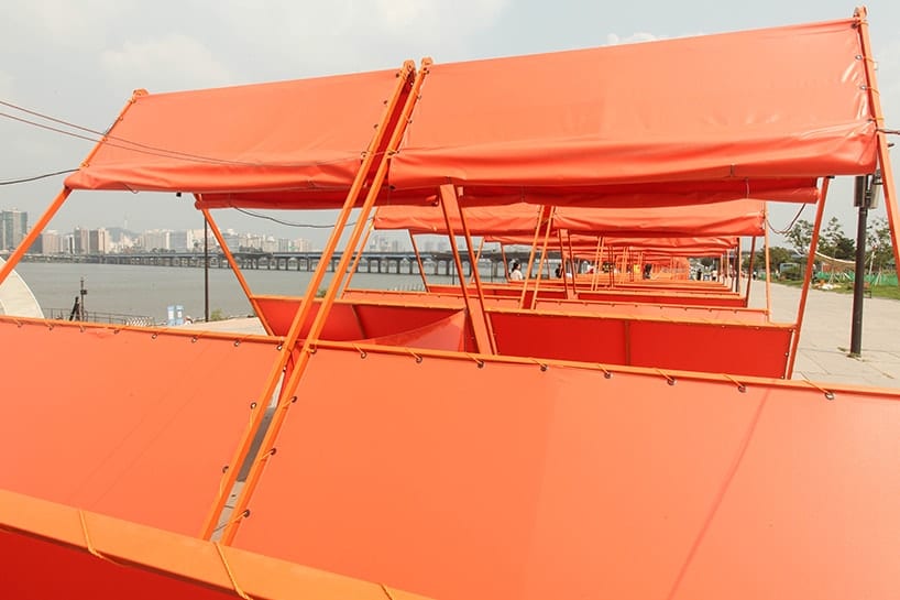 “The Bamdokkaebi Night Markets are collapsible and stackable structures used to host two design markets on the side of the Han River. The facilities only operate during weekends and for this reason, the booths had to be easy to store, move and deploy. The project provides two practical and iconic solutions for two different locations: Yeouido and Banpo,” explains Marco of one of the designed markets.