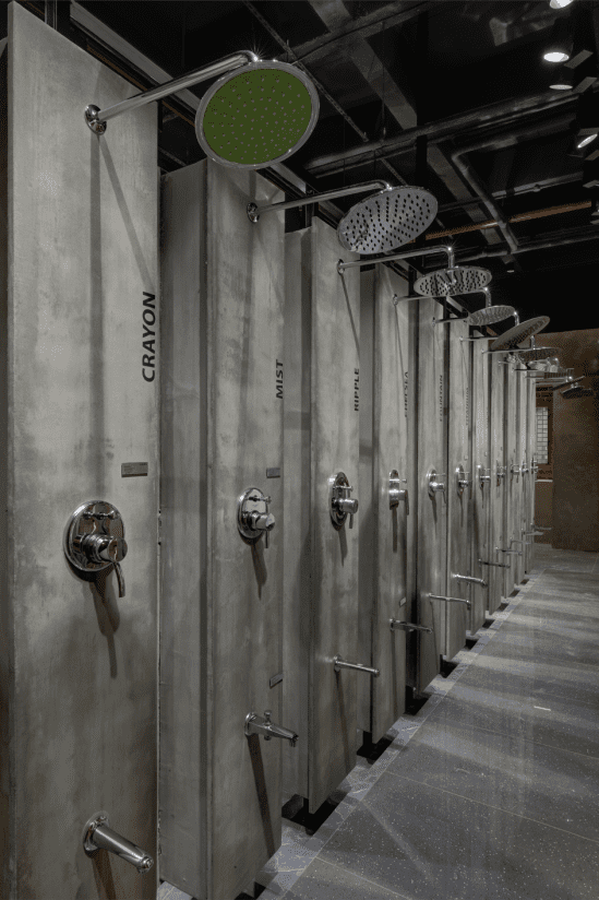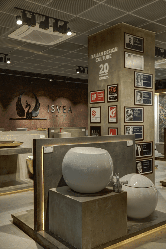 “Senator and Isvea areas have been designed with display panels in different hues of cement, textured flooring and floating metal ceiling while Cera display is in wood finish base with floating ceiling above,” explains the architect.