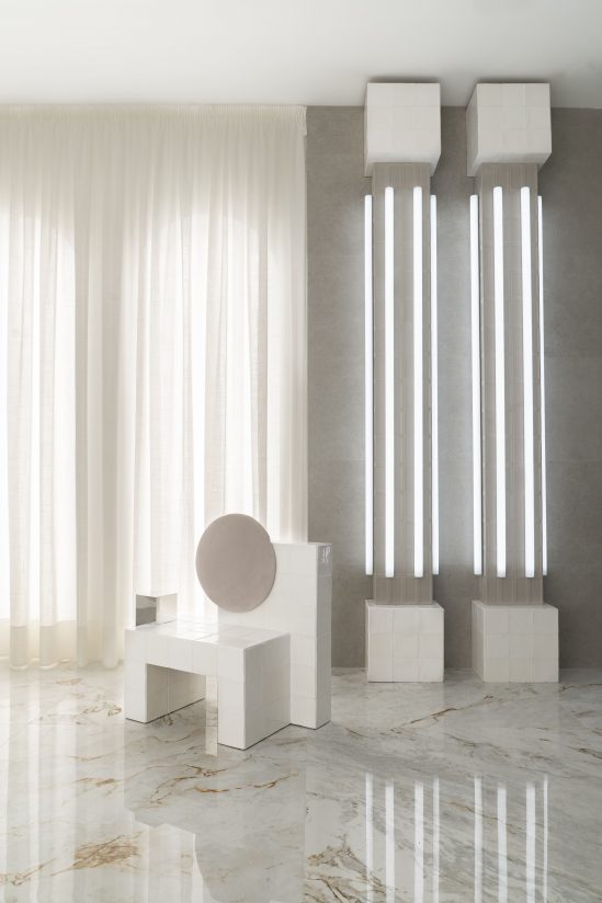 The designs that Masquespacio created for Roca in Casa Decor pay tribute to ceramics and its features in interior design and decoration, with a nod to contemporary Greco-Roman architecture and to surrealist fantasies that give us a feeling of timelessness.