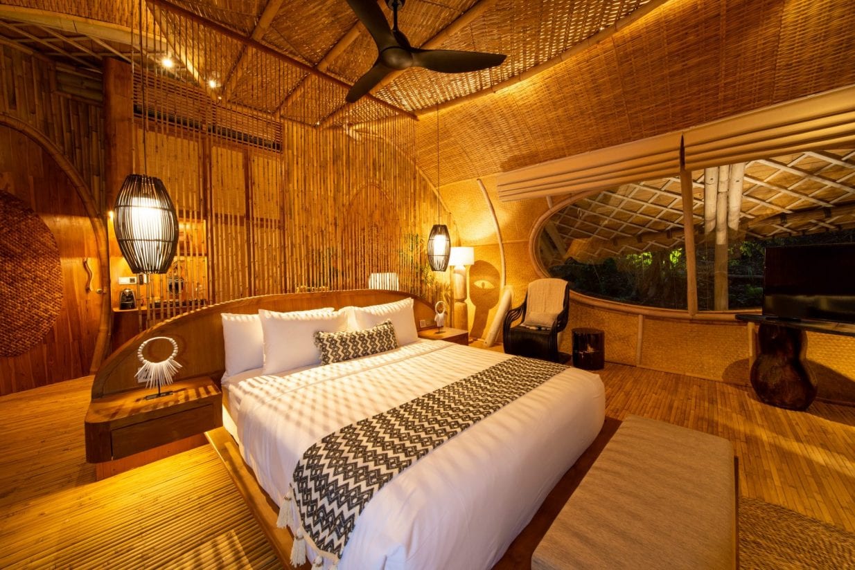 Nestled deep in the rice and paddy fields of Bali, is Ulaman Wellness Resort, a paradise on earth, with flowing light structures deeply engaging with its surroundings. Located inland in Bali, the Ulaman retreat is integrated into a forest that borders luscious rice fields on one side and a dramatic river on the other. The river converges water from the whole area creating a junction of small waterfalls that produces enough flow to power a hydroelectric generator that sustains the power of the buildings within the complex. Merging with nature has been at the forefront in the approach to the design, according to Inspiral Architecture and Design Studio, “not just by operation but by using materials found directly on the site and the immediate locality, therefore enabling the resort to become fully carbon zero.”