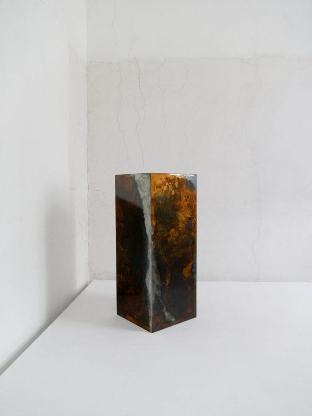 “’Ordinary’ rust transformed into a luxury pattern and unveils its deep, meditative nature. It can be perceived as abstract paintings, galaxies, waves etc., activating the user’s imagination. Each side of The Box acts as a separate canvas for creation but all together they form an extraordinary composition,” says the designer.