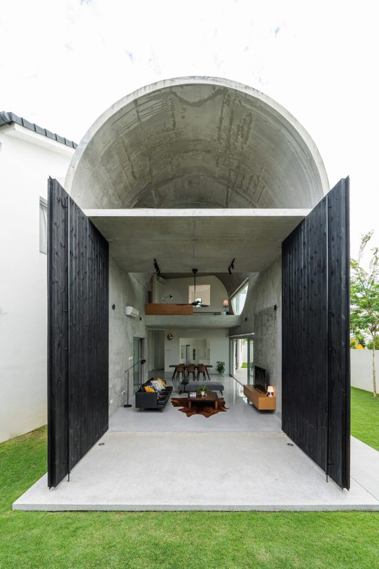Fabian Tan Architect adds a barrel-vaulted form to the existing suburban terrace house in Kuala Lumpur, Malaysia that creates a dramatic play of curves and levels.