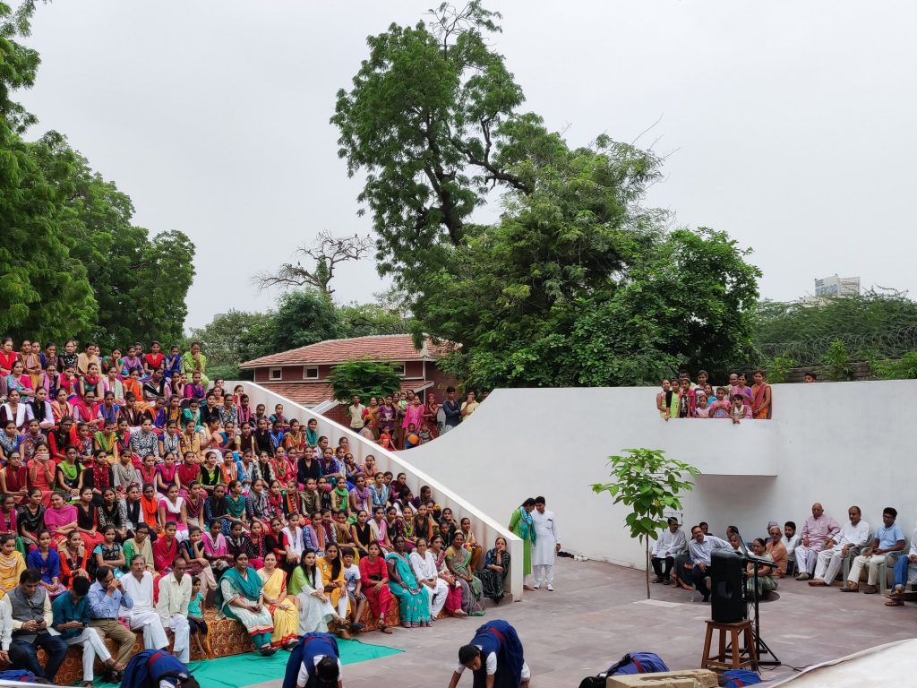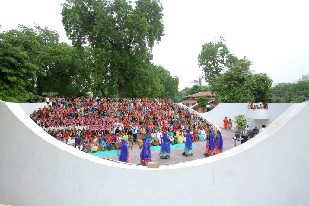 There are around 1,500 students who live and study at the Ashram, where Gandhiji’s strong vision on education – development of mind, body, and spirit – is being practiced. Jai Jagat Theatre was conceived as a gift to these children and the neighbouring communities who previously lacked a place for special events and practice for performing arts. The theatre was built in 2017 as a centenary celebration of the Ashram. Though it functions predominantly as a theatre space, its ability to resonate with human movements and emotions makes it much more than just a space for the children to practice their performance skills.