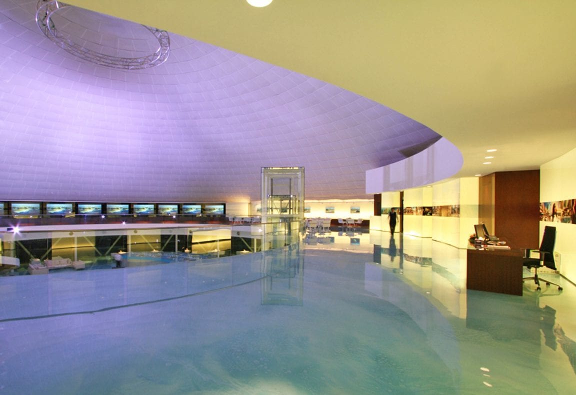 The first project in Doha was the design for the interiors of an office for the Alfardan Centre in 2003-2004. Our first entire building, architecture engineering, and interior design was the Oyster, the first building on the reclaimed island of The Pearl, designed in 2005 and built in 2006. The white dome, was literally iconic, not only by the shape of the shell and the meaning of the name but because the giant masterplan model of the Pearl is inside. The Oyster was and it is still the real estate sales centre of UDC. Many people say that it is one of the landmarks of Doha, as it was a test pioneer building for The Pearl.