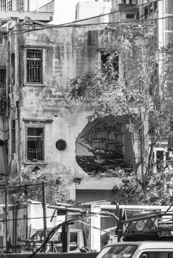 Corrupted Patterns represents EDL (Electricite Du Liban), an architectural masterpiece but also a pioneer of corruption consolidated in one building. Framed in this image, is a facade that portrays the destruction caused by the Port explosion. Corruption also corrupted itself, says Karim Nasser who has put this picture up for sale with the proceeds directed to rebuilding Beirut. For the link to buy this picture, check the bottom of the page.