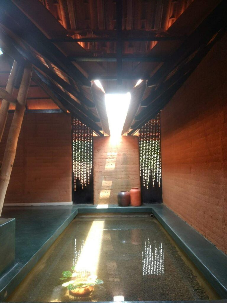 Guruprasad: Yes. Initially, the client wanted everything to be completely natural. We suggested lightweight roofing and slabs, but he insisted on a concrete slab for safety. We were unhappy, but later we realized it was a blessing, people were reassured seeing a concrete slab on a rammed earth structure. It made them believe the walls were strong enough to carry load. Sometimes compromises help in creating acceptance.