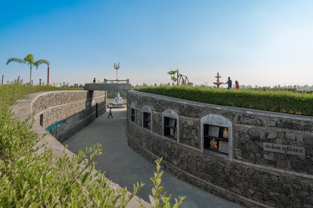 The upper level is designed as a spiritual park which also functions as a significant public space for socio-cultural engagement. The park is zoned to ensure the serenity required for such a space. Nandivan and Sitavan are located on the lower west, while Vrindavan and the children’s play area are on the upper east. “In the Indian context, society evolves around religion and such spaces often become more than just a place of devotion. Less conventionally, these spaces cater to all ages and genders regardless of the part of crematorium complex,” reflects the Himanshu Patel, the Principal Architect behind the studio d6thD design studio, a firm that values sustainable solutions to architectural challenges.