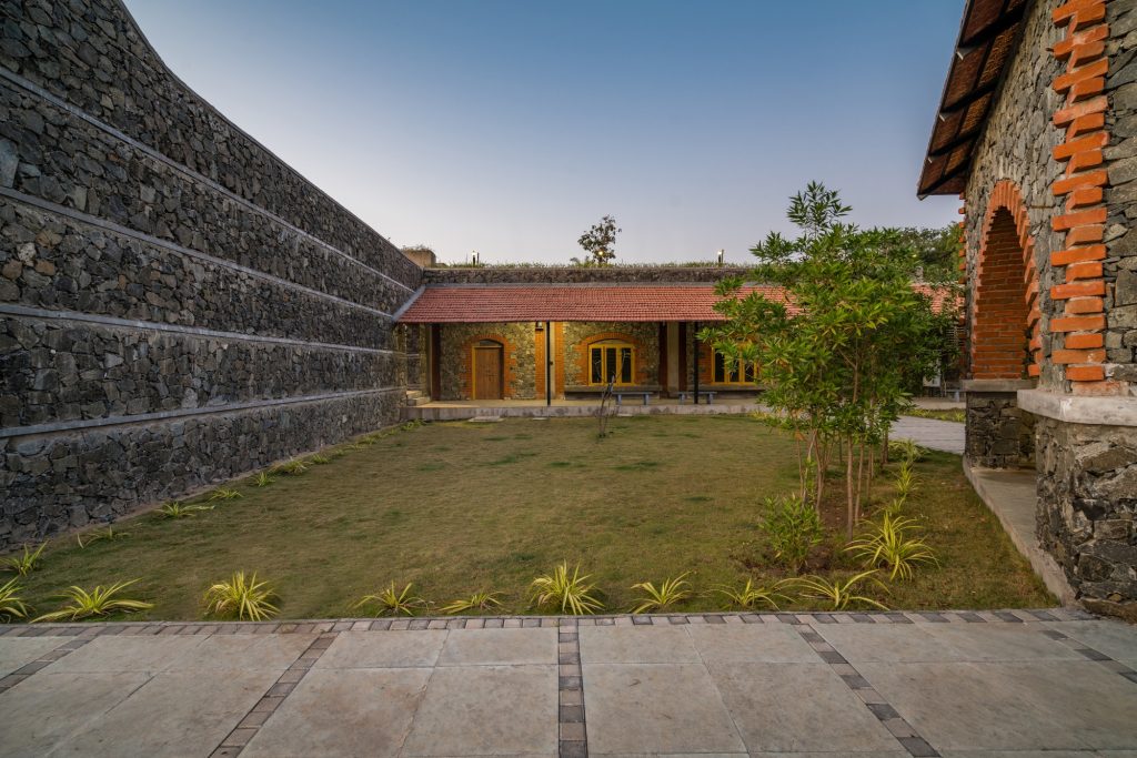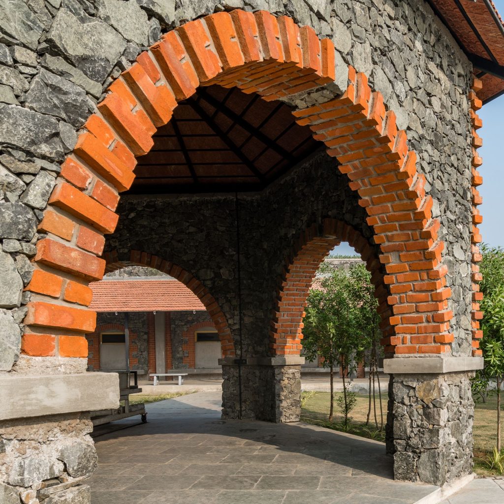 The use of locally available random rubble stones and terracotta roofing tiles instil a calming and muted environment that is essential for spaces with such a function. In addition to adding texture and warmth to the spaces, these materials are also cost-effective and time tested.