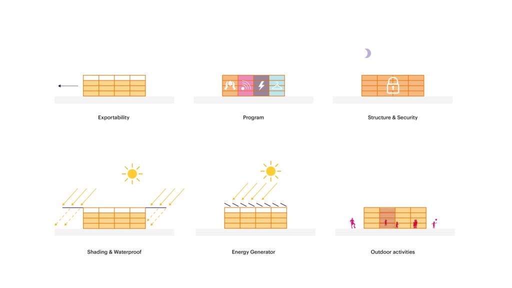 Functionality drove every design decision. The shipping containers not only offer durability and ease of transportation but also house various programmes, from equipment storage to shaded seating areas. The inclusion of solar panels and rainwater collection systems reflects the project’s sustainable ethos, ensuring minimal environmental impact in this resource-scarce setting.