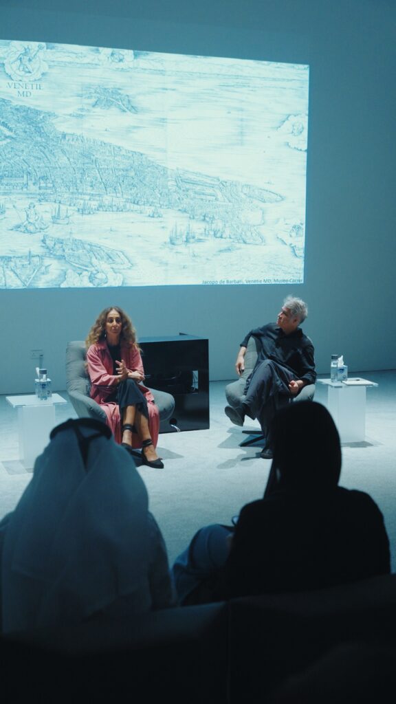 Held alongside I.M. Pei: Life is Architecture exhibition at ALRIWAQ, the programme gathers architects, designers, academics, and students to examine today’s architectural questions through multiple perspectives. The first public session brought together Alejandro Aravena, Pritzker Laureate and founder of ELEMENTAL, and Manuela Lucà-Dazio, Executive Director of the Pritzker Architecture Prize and former Venice Biennale director. Their discussion focused on the history and curatorial strategy of the Venice Biennale, and the evolving role of institutions in shaping architectural thinking.
