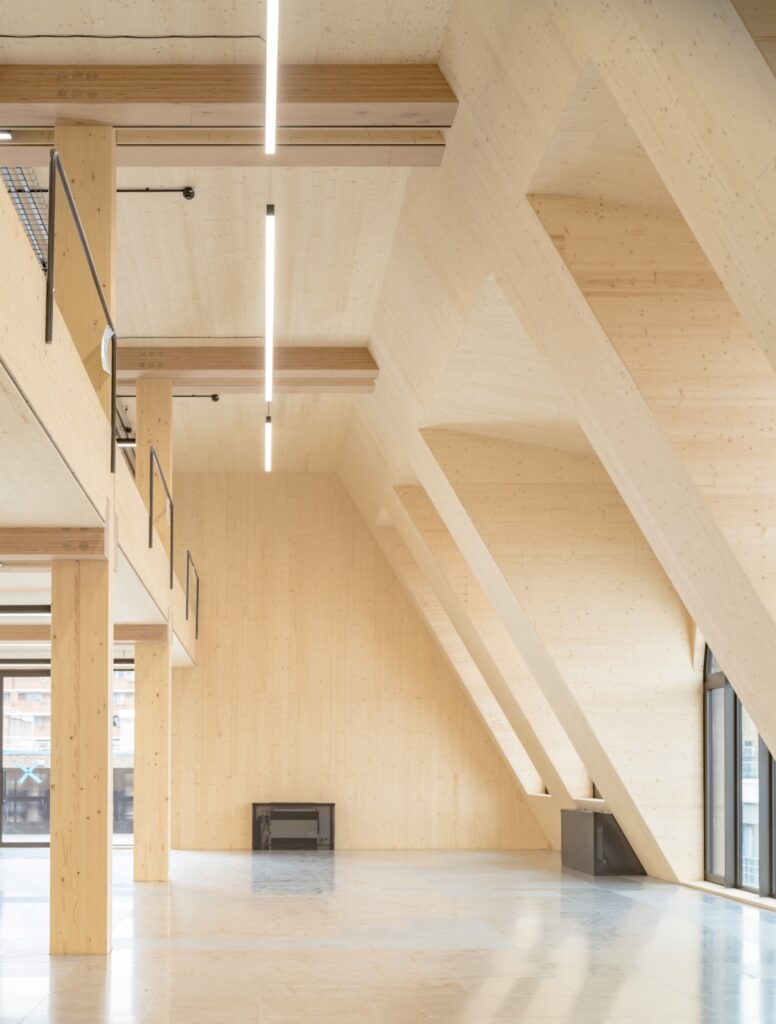 But the beauty isn’t just skin deep; this project is also incredibly smart structurally and environmentally friendly. They chose not to demolish the sturdy 1970s concrete structure. Keeping it saved a lot of carbon and waste. This allowed them to add new spaces above and behind the building, getting more value from the site with less environmental harm. They even recycled the old wall bricks to support the new cladding. For the new upper floors and back extension, GROUPWORK cleverly picked cross-laminated timber (CLT). Because CLT is lighter than steel or concrete, they could add floors without needing expensive, high-carbon foundation work, plus it built faster.