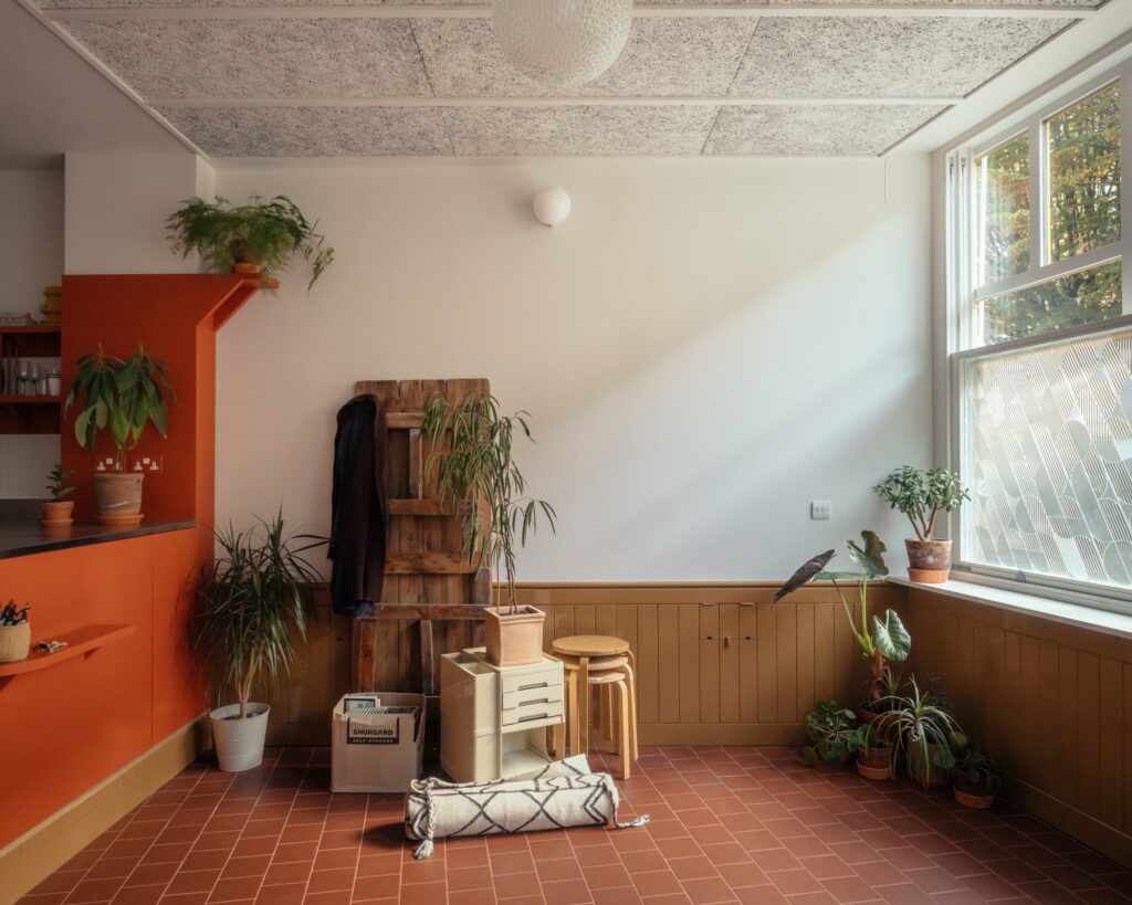 Beyond being sustainable, this project’s dedication to circularity and material reuse gives it a deep personality and a delightful quirkiness. The commitment to cutting waste and repurposing items fills the design with playful and charming touches, reflecting an approach that’s both ethical and fun. The shopfront is a brilliant piece of craft, using remade windows with innovative patterned glass to cleverly manage light and privacy. Even found items, like the smart use of snooker-table legs in the joinery, turn ordinary details into meaningful stories, subtly enhancing the street for everyone.