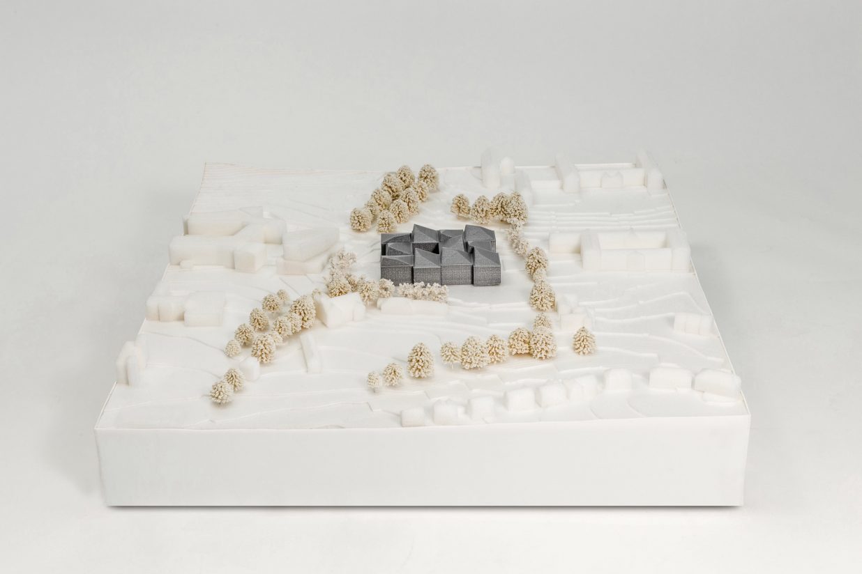 A three-storey module with a 15x18m footprint was established as the building block from which the center was formed. Each module has two façade types: a ‘fenestrated’ façade generally on the long face, and a ‘gable’ façade to the short face. Each module is capped by an asymmetric pyramidal roof with a central roof light. Twelve of these modules rotated and handed, create the overall plan layout and building volume, with one of the central elements being ‘removed’ to create a focal internal courtyard.