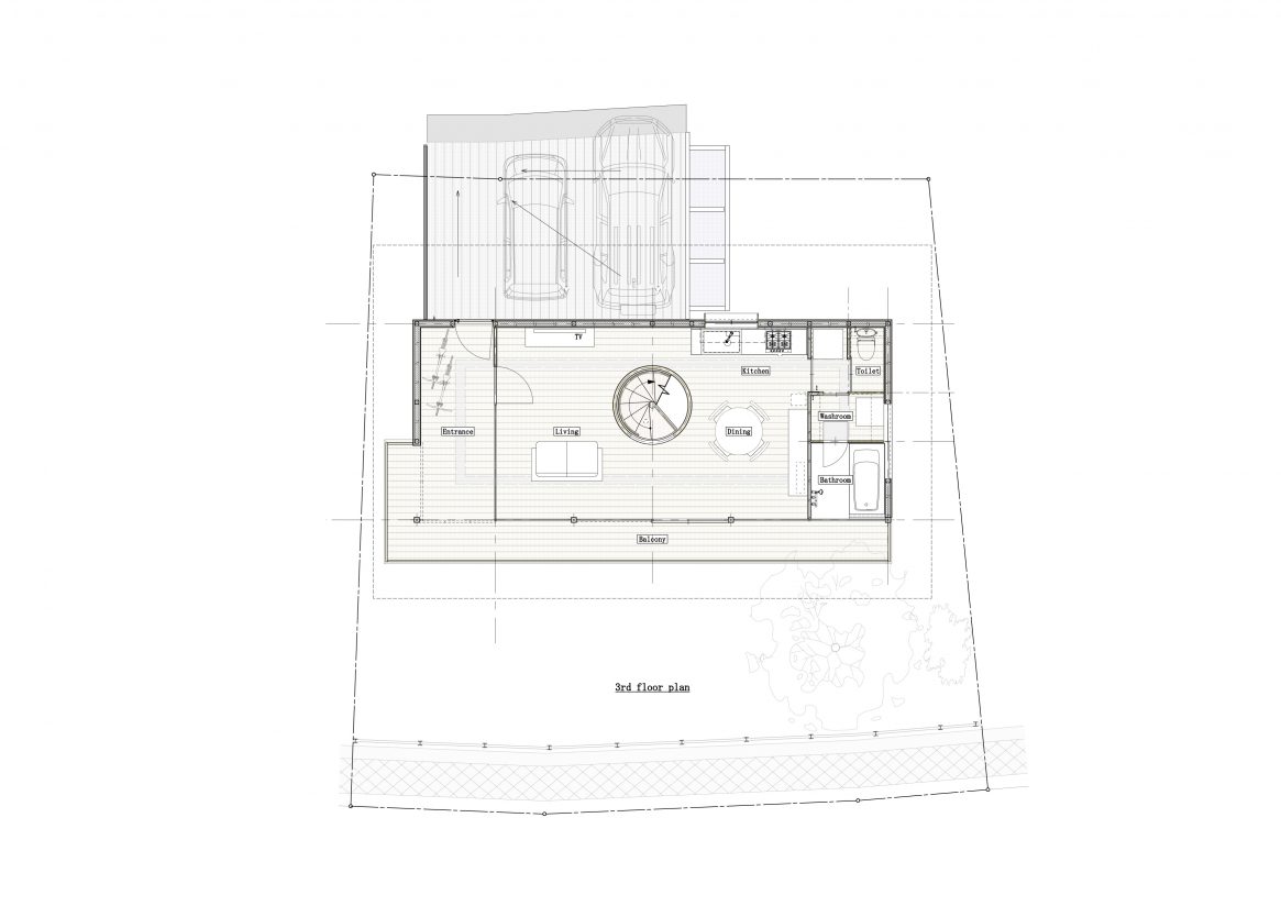 This residence built a few years ago is located in a quiet residential area that takes about 30 minutes by car from downtown in Nagoya, Japan. The site is clearly the focus here, which could be seen as an advantage if designed to take maximum benefit of the beautiful view on one side of the site. The architect took the challenge of the particularly steep cliff site and gave the structure a concrete base without many windows on its lower floors. The concrete structure gave the residence structural immunity on the steep slope while the livable areas were assigned to the third floor in line with the road from where there is approach.