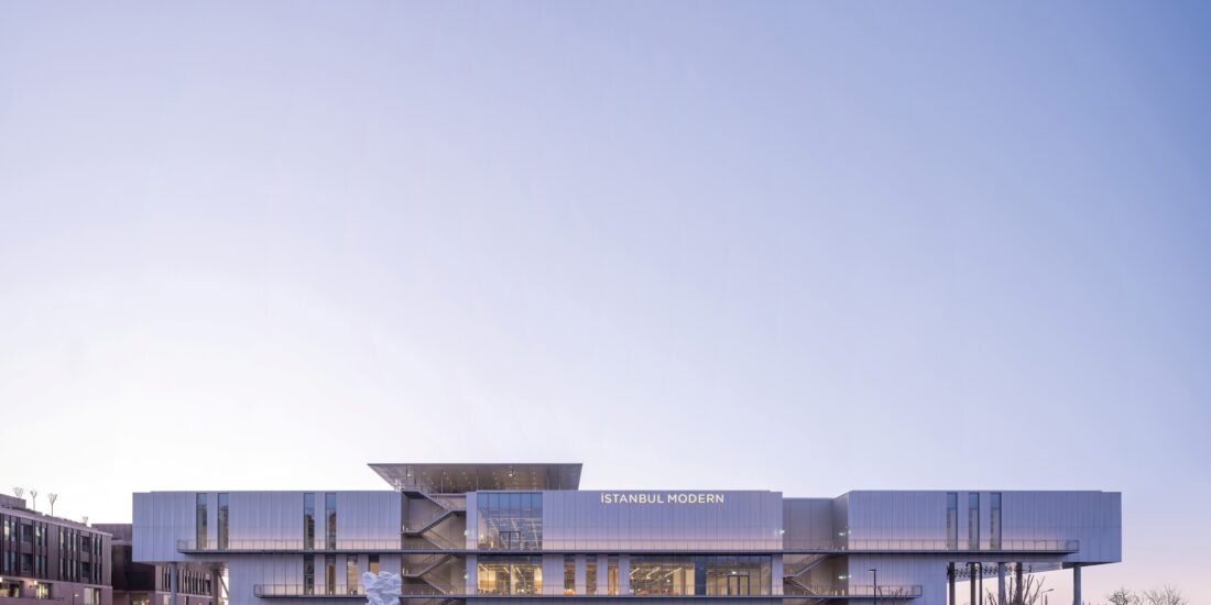 Beneath the red roof, the exhibition spaces have a warm, natural atmosphere, created by wooden ceilings and open views of the surrounding landscape. The facades are structurally glazed to a height of 13 meters with glass reinforcement fins. This transparency blurs the boundary between indoors and outdoors, again enhancing the connection with nature