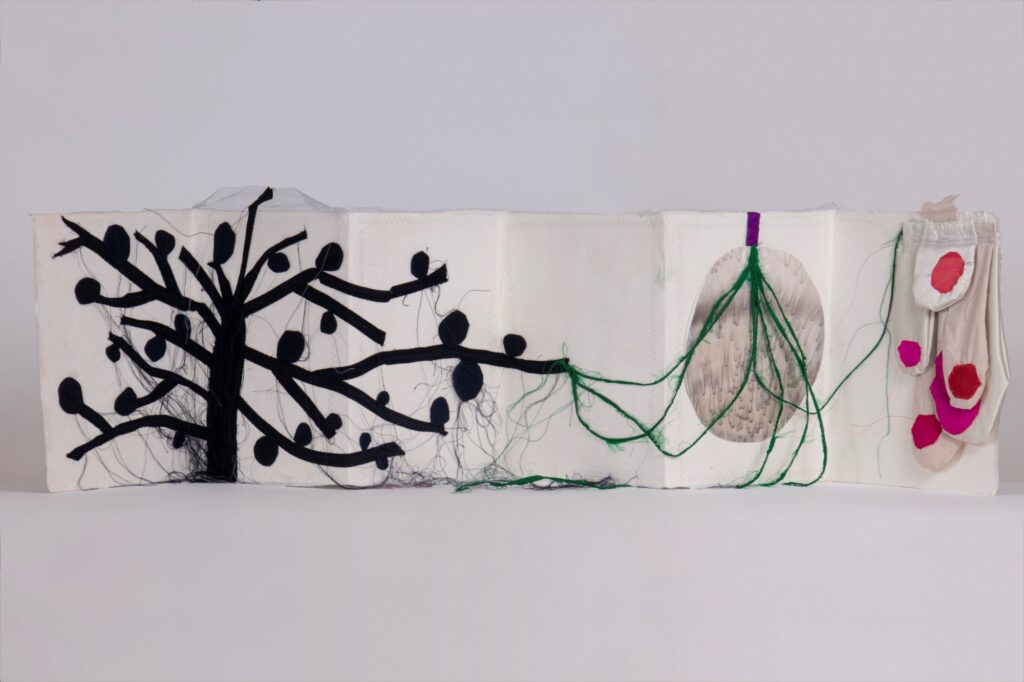 “In my practice, the female body is at the centre of my work. Before the Covid-19 outbreak, I was working on subjects such as procreation, death, and the cycles of renewal. The crisis meant to me the end of an old order and the beginning of something new. In my book I wanted to relate to this crisis stressing the idea of renewal, rebirth, and life in connection with the female body and its ability to procreate and nourish,” she says about her work, “My intervention was similar to my practice as I decided to use fabric, one of my favourite mediums. It is like a colour palette, and it can be sensuous, like a second skin. Moreover, stitching on fabric is a gesture of repairing and preserving.”