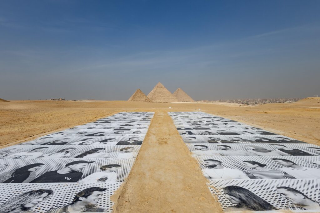 Inside Out Giza was the first Inside Out Photobooth in Egypt, with more than 3,600 participants visiting the pyramid-shaped interactive photo booth during the second edition of Forever Is Now in 2022. The participants received a large-scale black and white portrait that they got to paste onto a billboard and temporarily see together with the Great Pyramids of Giza. This year, making an even bigger ephemeral statement in front of the timeless monuments, the pictures were showcased collectively in conversation with the UNESCO world heritage site.