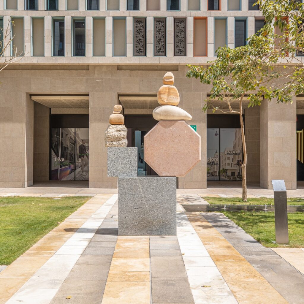 Osan: Tawazun represents the balance between Qatar’s heritage and modernity. Achieving the precise alignment of granite, sandstone, and limestone was a major challenge. Collaborating with artist Shua’a Ali, we ensured the sculpture embodied symbolic equilibrium.