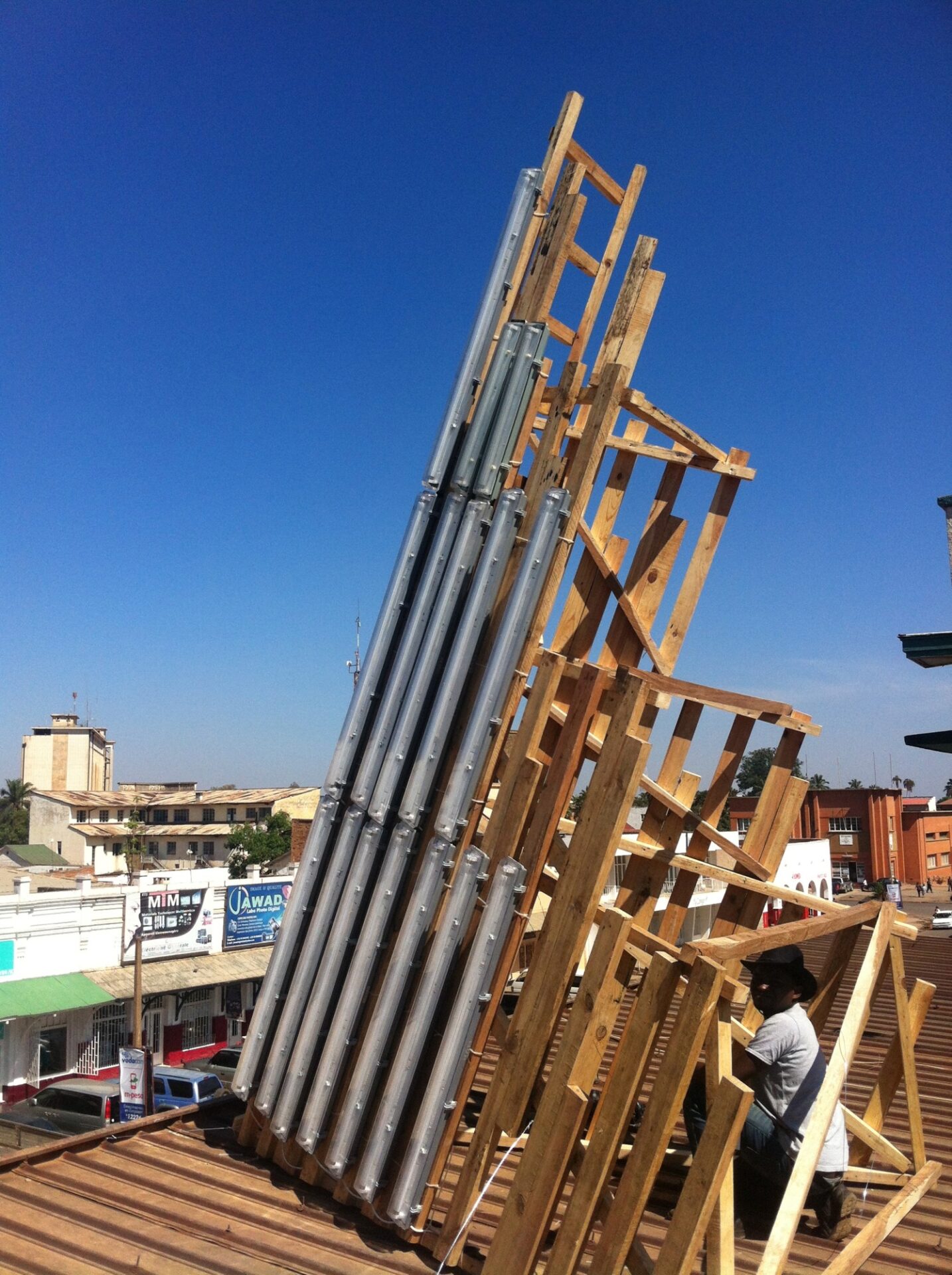 Ângela Ferreira: The tower itself is inspired by the radio towers built by people in rural areas, most of whom were drawn from former colonies. They used these towers to transmit programs in their respective mother tongues. Radio was, and often is, a principal medium of communication, a symbol of popular revolutionary methods.