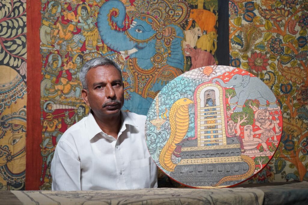 Master Artist Harinath N showcasing his stunning Kalamkari artworks