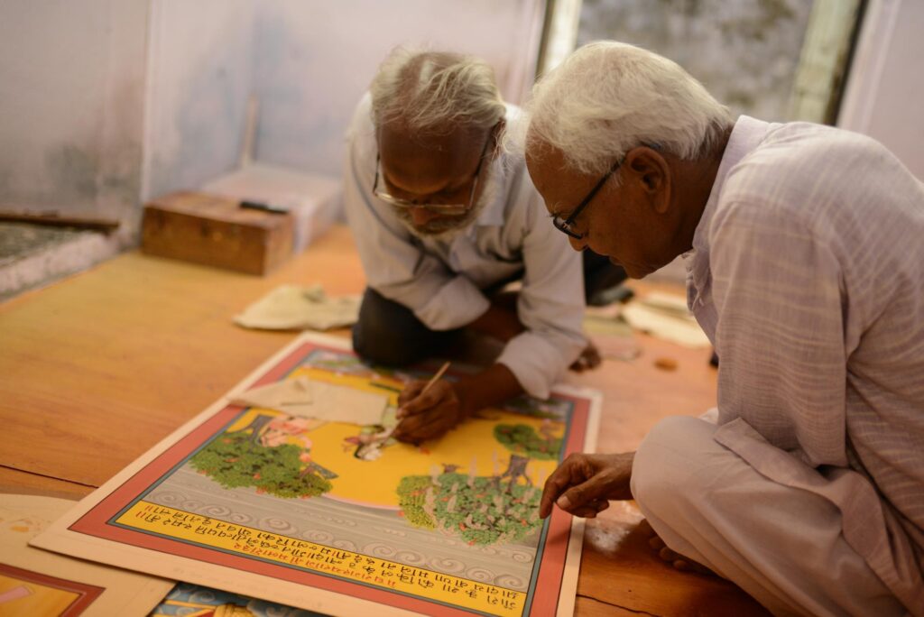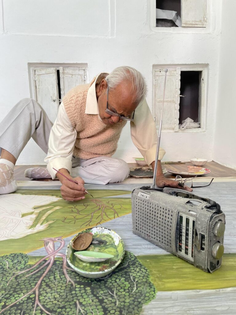 Master Artist Shehzad Ali Sherani, one of the last Kishangarh Miniature artists, creating a beautiful Kishangarh Miniature artwork in his studio