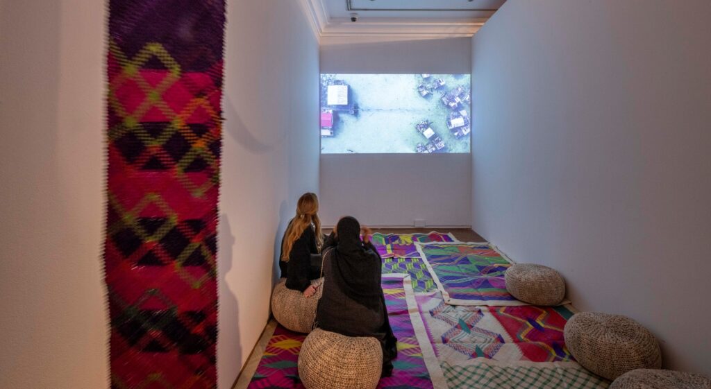 Her accompanying exhibition, paths of the wind weave shadows bare bones of a mat, opened the same week at The Gallery at VCUarts Qatar and remains on view to the public through December 6, 2025. The exhibition invites visitors to consider materiality, language, and power through community collaboration. The exhibition is curated by artist and educator, Head of Gallery Chase Westfall and Associate Curator of Special Projects, Meriem Aiouna, of VCUarts Qatar.