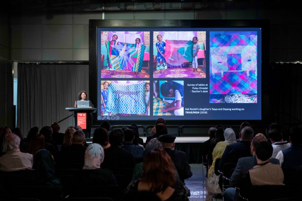 Yee-I-Lann giving the keynote lecture at the opening of the HBK Symposium of Islamic Art 2025