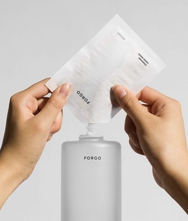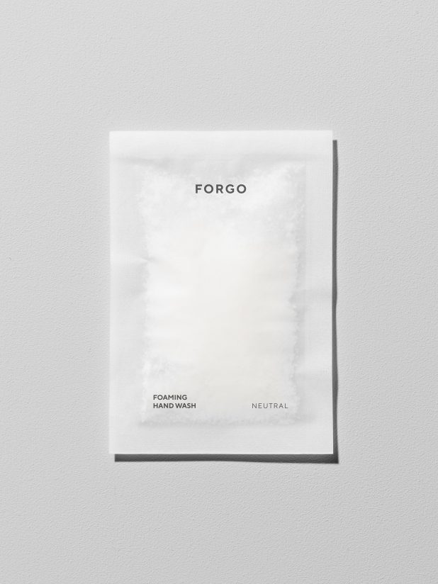 Form Us With Love’s newest venture, FORGO reconfigures the most basic of personal care products; handwash. One small paper sachet contains the essential ingredients needed to turn regular tap water into a full bottle of foaming hand wash— in under a minute. It’s simple and sustainable.