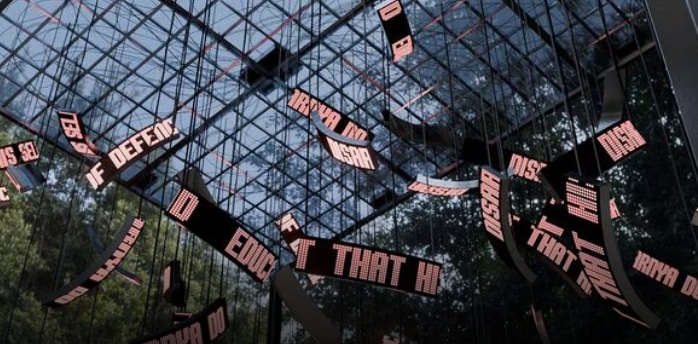 Barve utilises the familiar form of suspended LED tickers, commonly found in public spaces, to disseminate Ambedkar’s profound ideas on law, human rights, and social justice. By reimagining these everyday objects, the artist highlights issues of access to education, technology, and marginalised histories, critiquing the fading of crucial social and historical texts from public consciousness. “I am not your Dalit” serves as a platform for reflection on the intersection of anti-caste activism, technology, and the future of Indian society, prompting viewers to reconsider the enduring relevance of Ambedkar’s vision for a just and equitable nation.