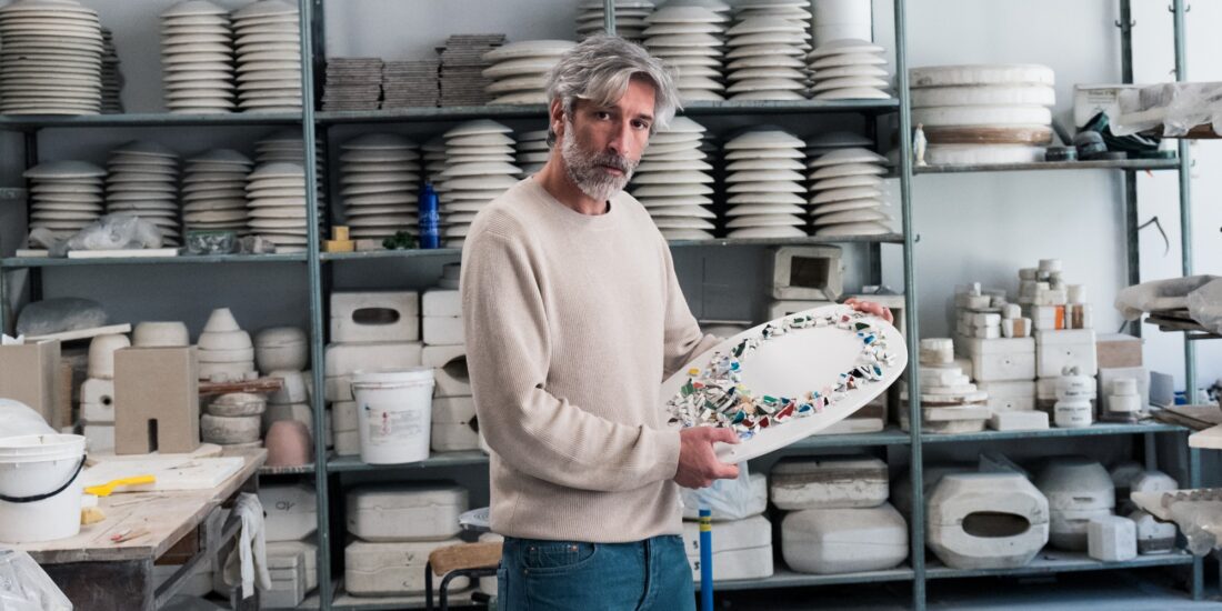 Bocini’s favourite collaboration is with the Italian brand Formafantasma’s which produced the torn edges ceramics.