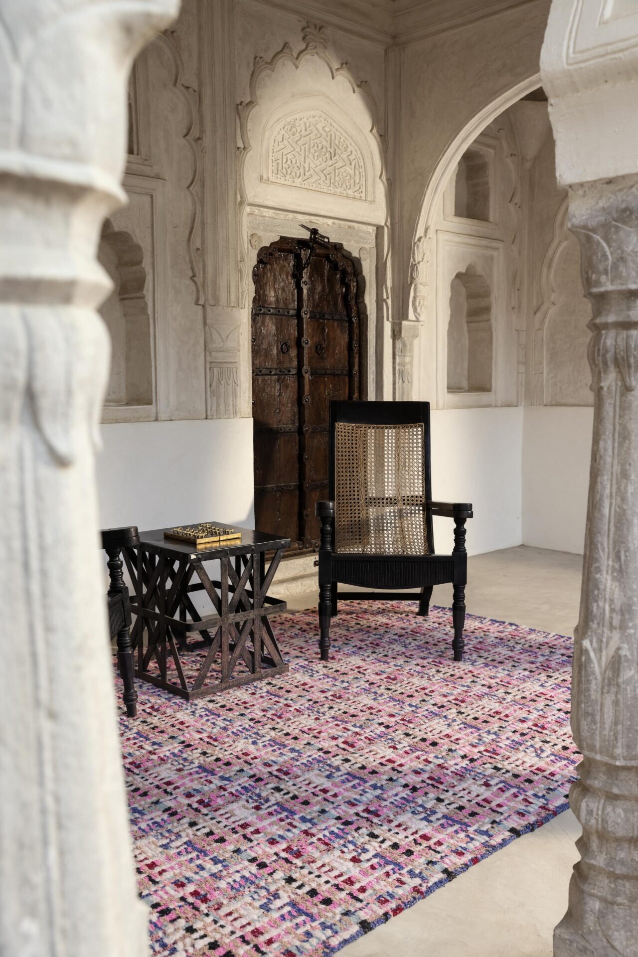The collection’s aesthetic is both refined and evocative. Elegant geometries meet a sophisticated palette of pinks, reds, garnet, and crimson, reinterpreting traditional Indian hues through a contemporary lens. The rugs are designed to command presence while maintaining harmony, effortlessly defining modern living spaces. Each piece demonstrates that function and artistry are not mutually exclusive; form, texture, and colour work together to elevate interiors.