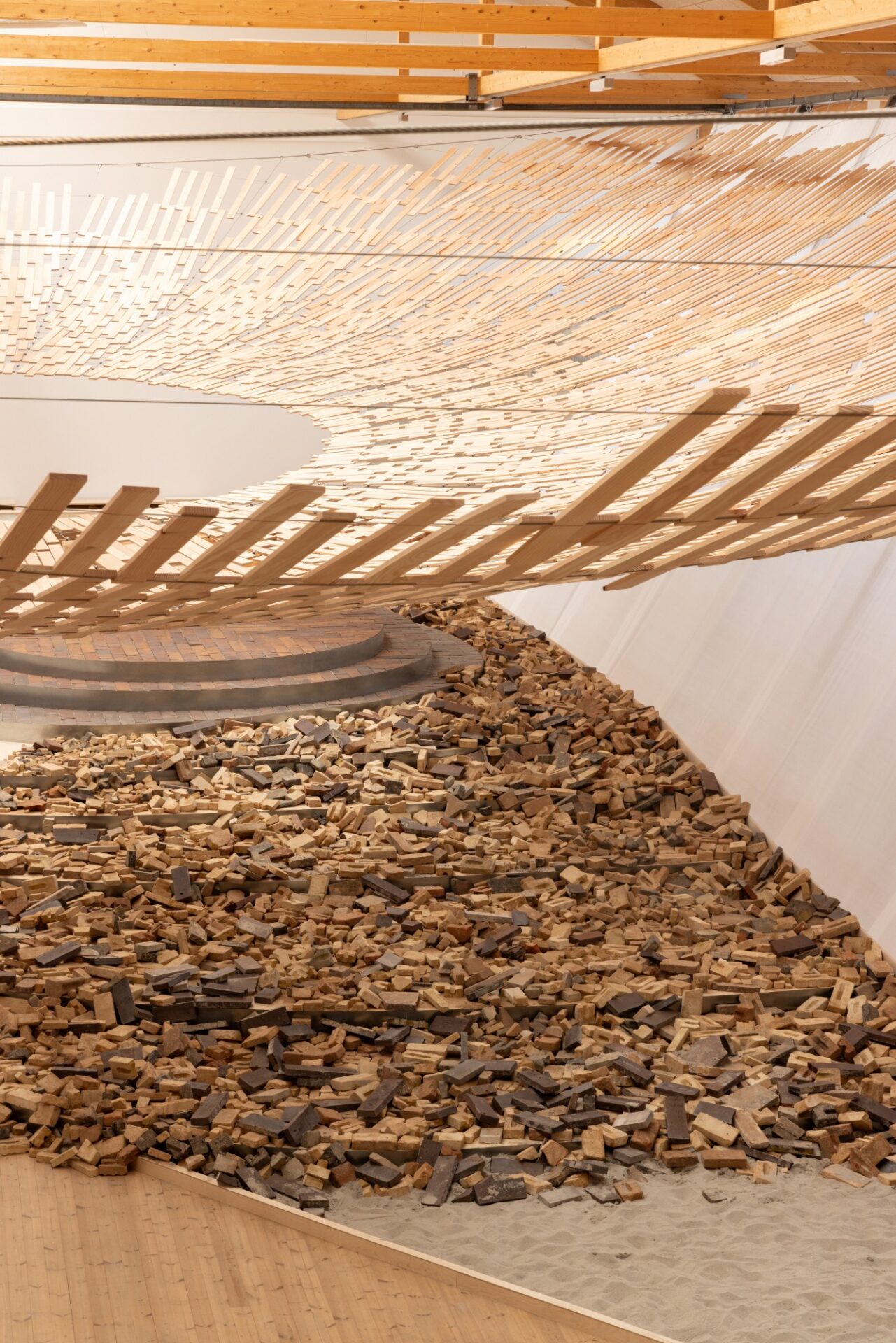 This alignment of material and atmosphere reflects a shared approach between Kengo Kuma and Dinesen. In Kuma’s work, wood is often used to dissolve boundaries between built form and landscape, favouring permeability and lightness over monumentality. Dinesen’s practice similarly begins with the forest, emphasising the inherent qualities of timber through careful selection and craftsmanship. In Earth | Tree, these positions converge, not as a statement but as a constructed condition.