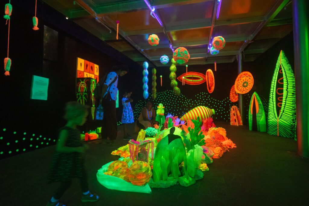 An immersive, glow-in-the-dark environment, Phytoplankton World invited children into the microscopic universe that sustains life on Earth. Conceived by Children’s Art Studio (CAS) and led by Sharada Kerkar, Co-founder of CAS and Director of the Museum of Goa, alongside artists Tincy Paulose and P. S. Soorya, the installation mediated the scientific knowledge into sensory wonder.