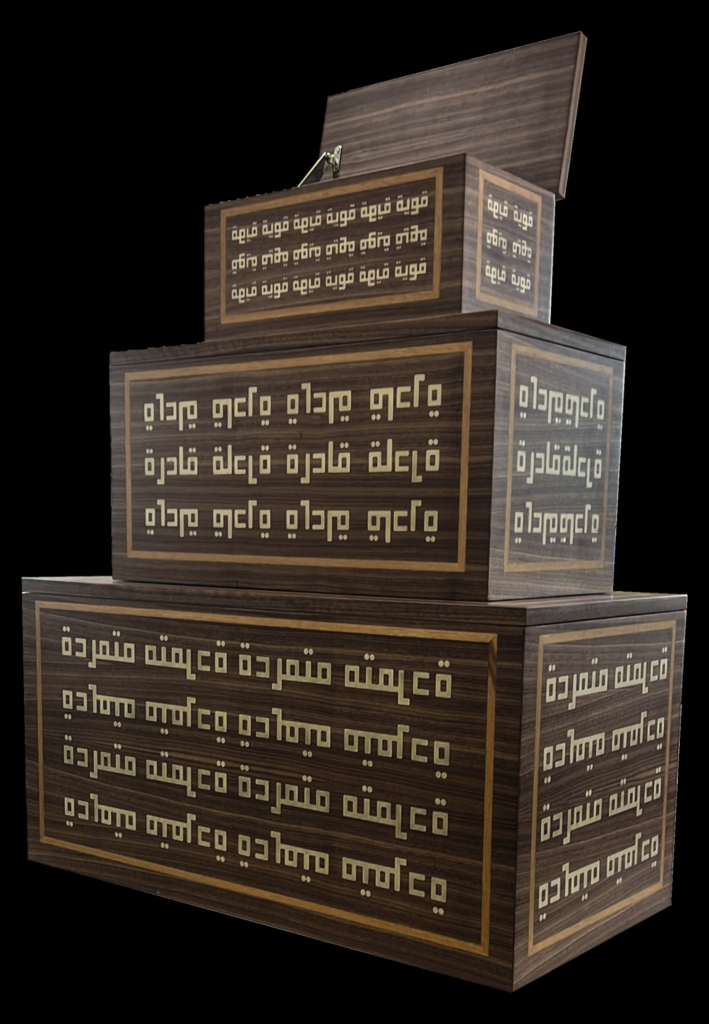 This project attempts to break stereotypes through design that highlights motivational Arabic adjectives. The final outcome is a set of three beautifully carved dowry chests.