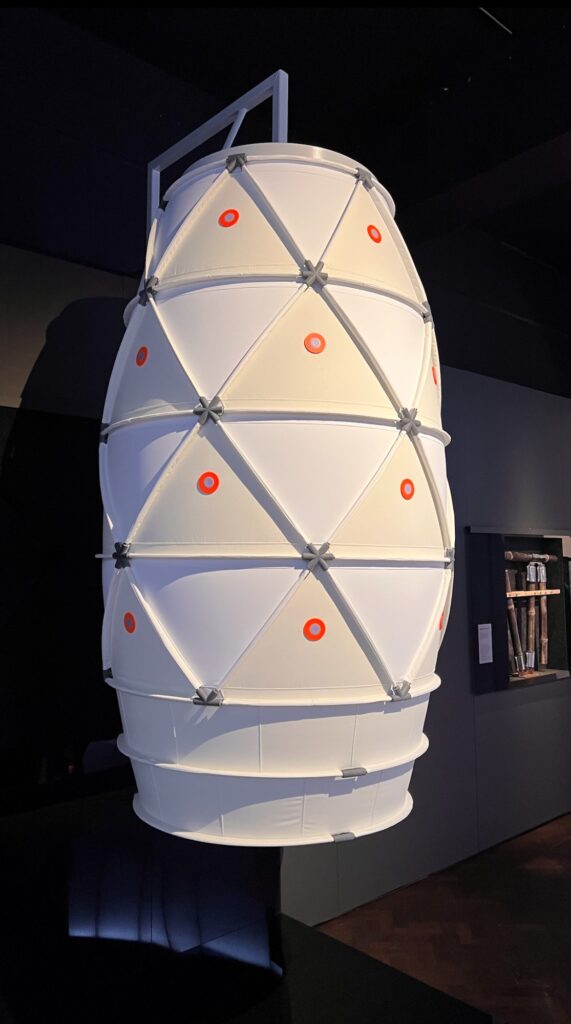 Chrysalis is a dynamic air-cleaning sculpture that mimics a living organism. Suspended from the ceiling, the sculpture is composed of a rigid upper structure and a kinetic lower section made of concentric fabric rings. These rings move rhythmically, creating a visible and audible breathing cycle. As the rings descend, the structure expands, drawing in polluted air through one-way valves. When they lift, the air is compressed and pushed through multi-layered filters embedded with nano-coated textiles, effectively neutralising toxins, gases, bacteria, and particulates.