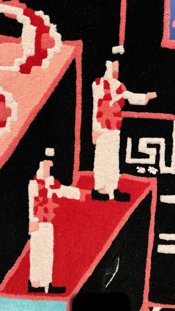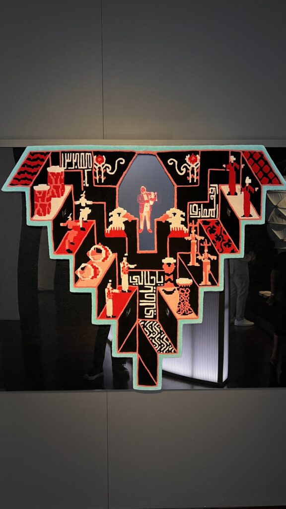 The installation blends analogue and digital media, featuring a custom-made carpet with embedded speakers and an integrated screen. Through audio-visual recordings, it captures the diverse musical and dance expressions of the Zaffah, highlighting both the regional variations and shared cultural spirit.