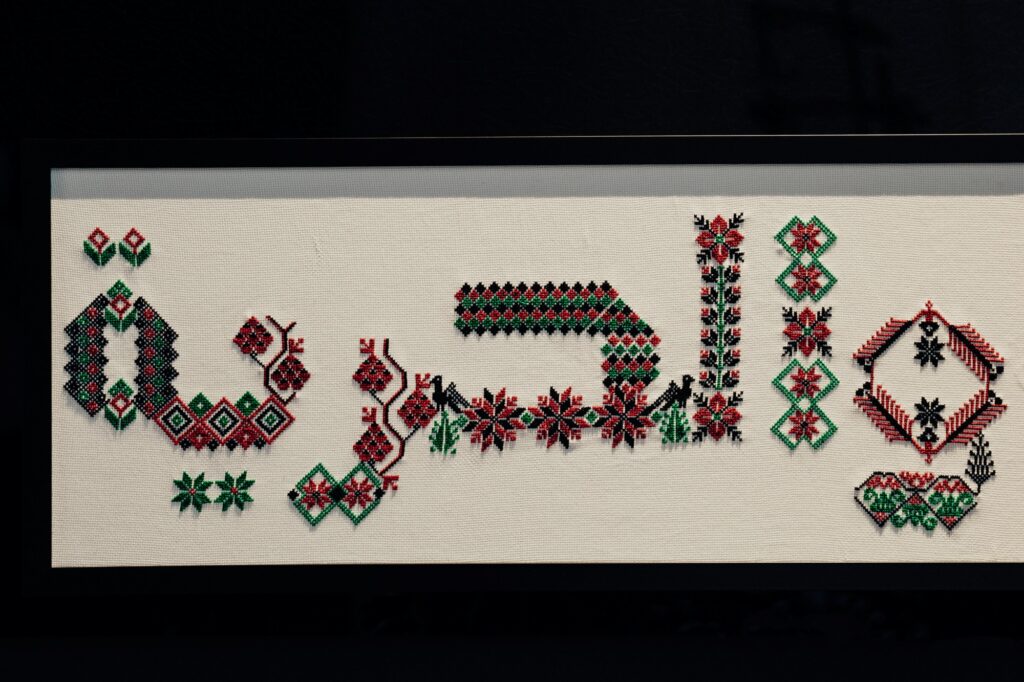 Each stitched letter tells a story of survival, identity, and cultural resistance. The installation allows visitors to interact with the typeface by typing their names in both Arabic and English, creating a direct, tactile connection to the women’s narratives.