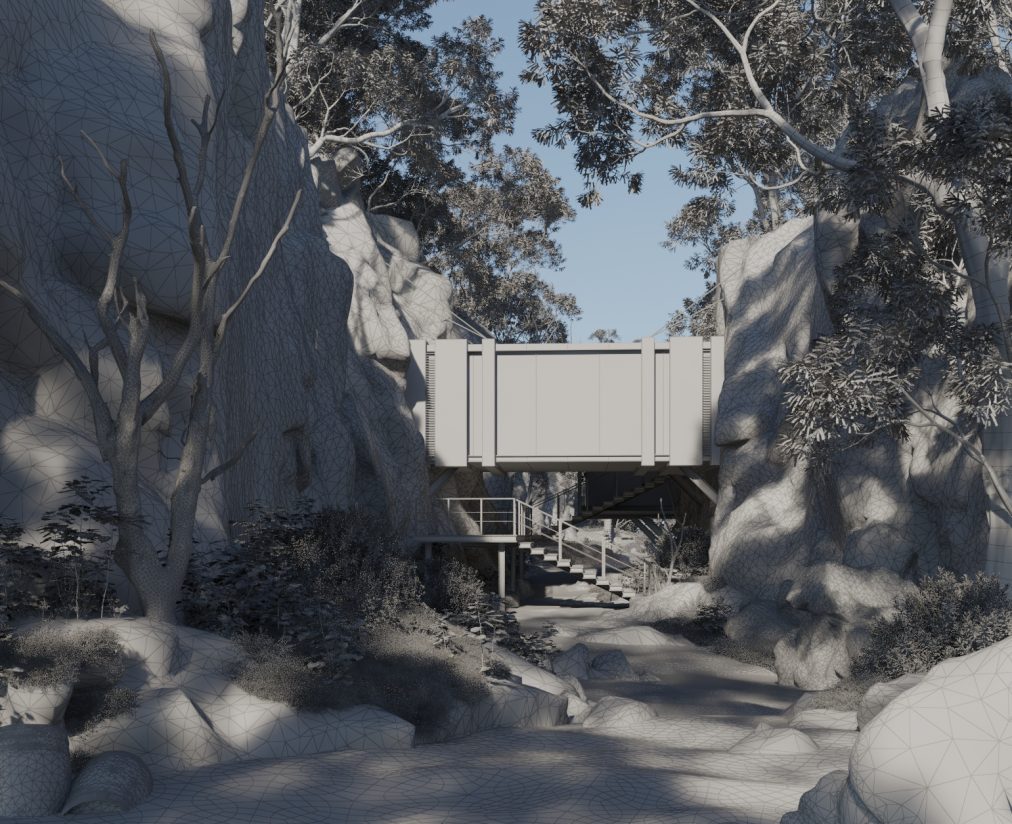 - The 3D model is built, over which the environment and then, the architecture are created.