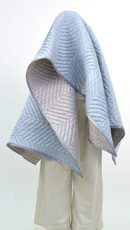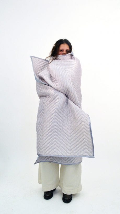 My Moving Blanket Quilts are inspired by packing material. They are made using silk which is digitally printed with images of bubble wrap.