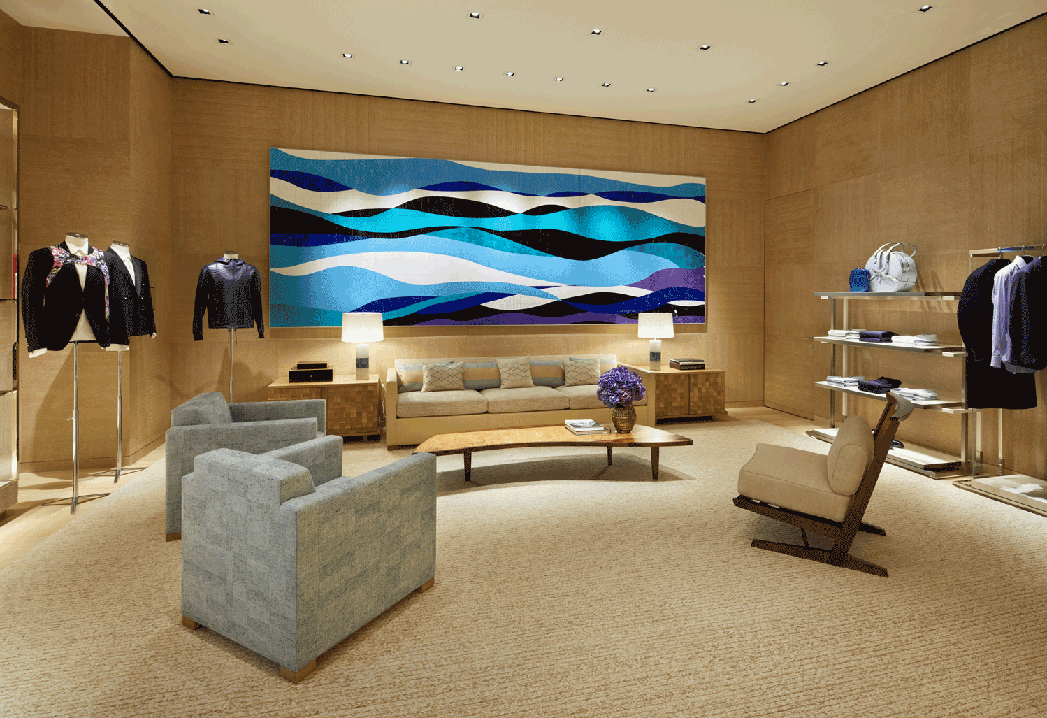 Inside, architect Peter Marino has followed similar inspirations, connecting the store’s four floors to both the maritime feel of the building and to its connection with Japanese traditional culture. In spaces dedicated to a complete offering of the different universes and collections, wooden floors give the impression of decks, with wood-clad pillars and metal ceilings reminiscent of the spirit of a grand yacht embarking on an exciting adventure. Traditional Japanese materials such as woodwork and origami washi paper features throughout. The vast spaces are worked to create varying volumes, from spectacular halls to more intimate corners and lounges.