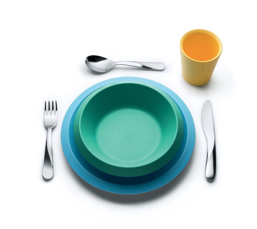 Giro Kids Collection comprises a children’s cutlery set and tableware. The cutlery originates from the Giro cutlery collection designed by Ben van Berkel for Alessi and allows children to mimic adults by using the same utensils as they do, while also helping them to learn how to use, hold and balance their cutlery correctly. Made from polished steel, the twist in the handle enables grip and balance for both right and left-handed children.
