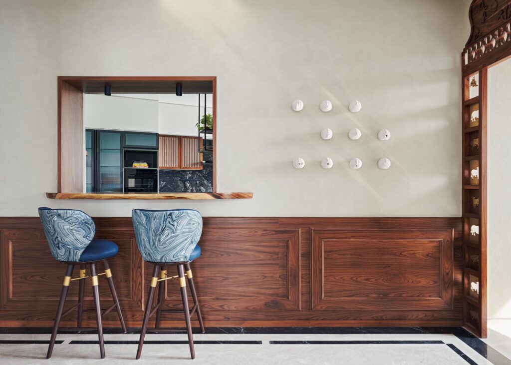 The wooden and rattan swing is a reference to the family’s roots in Gujarat, where a swing was often found in traditional homes.