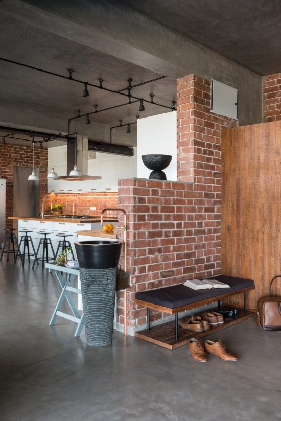 “With a sustainable design approach, we worked with exposed brickwork and polished concrete flooring. We integrated all these elements in a language that uplifts the natural quality of each material, giving the residence an earthy feel,” he says.