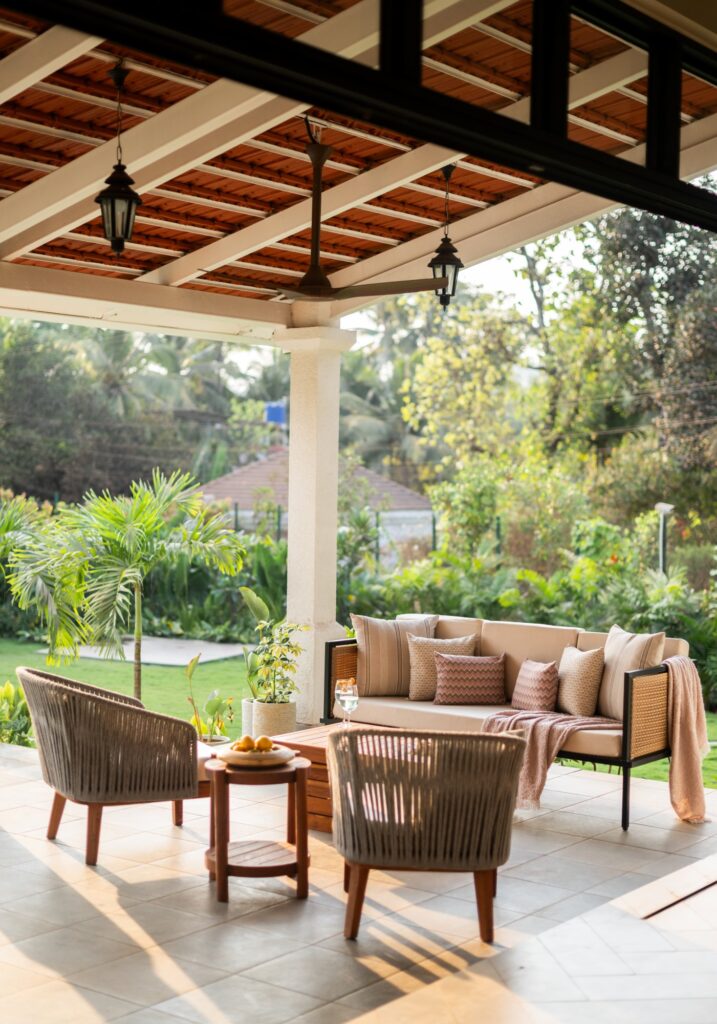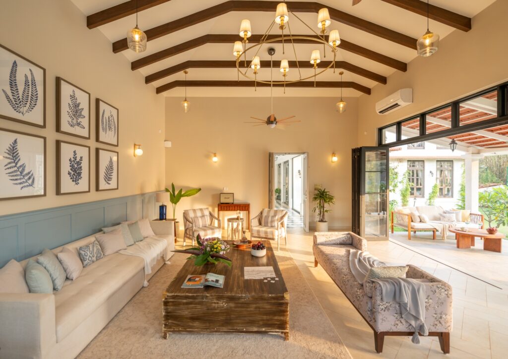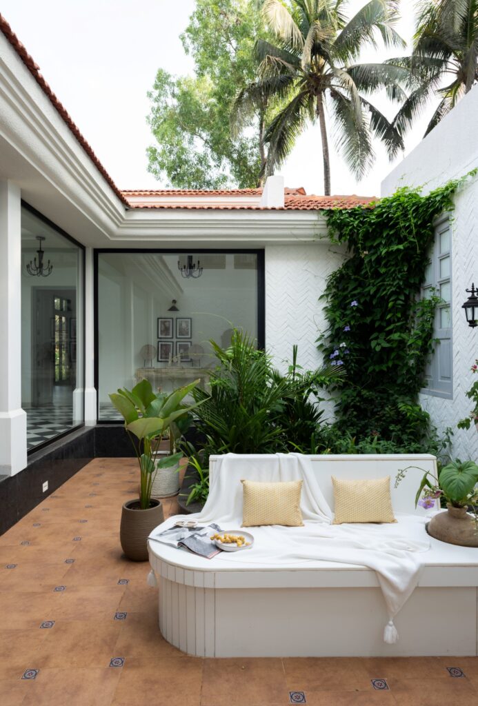 When designing residential projects in Goa, Ara Designs makes it a point to use local materials, so red laterite often teams up with white plastered walls and terracotta tiled sloping roofs creating a modern Goan-Portuguese aesthetic that acts as a common thread in their villas with Isprava.