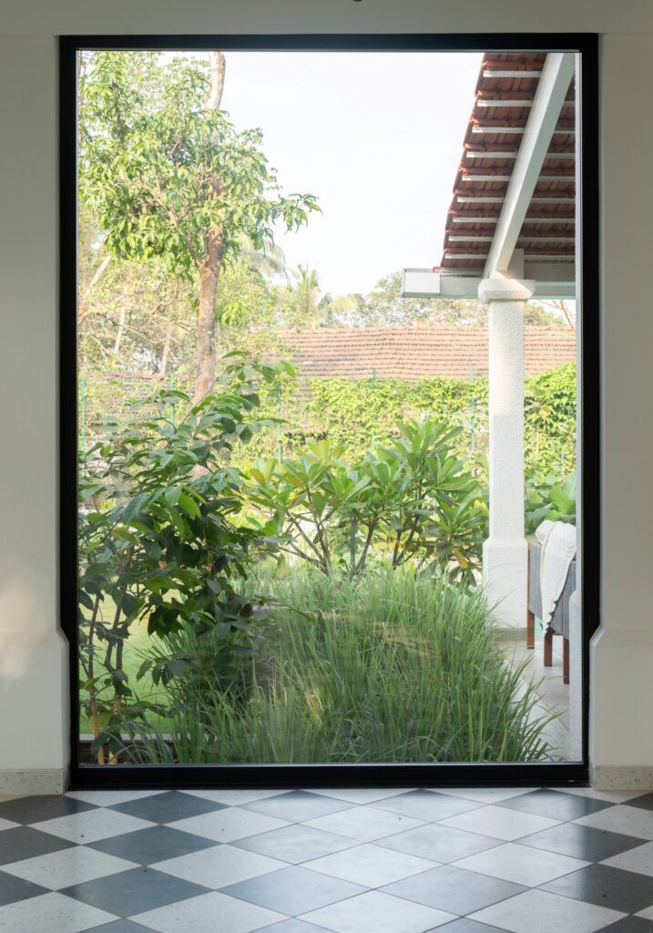 Amey elaboorates, “The idea behind the space is that you feel like you are walking in and out of the house, and you don’t realise where the boundaries are and that the roof has come in. So light and shadows play a major part in the space.”