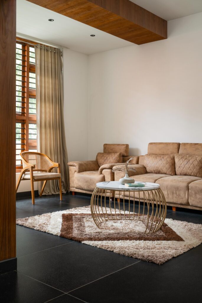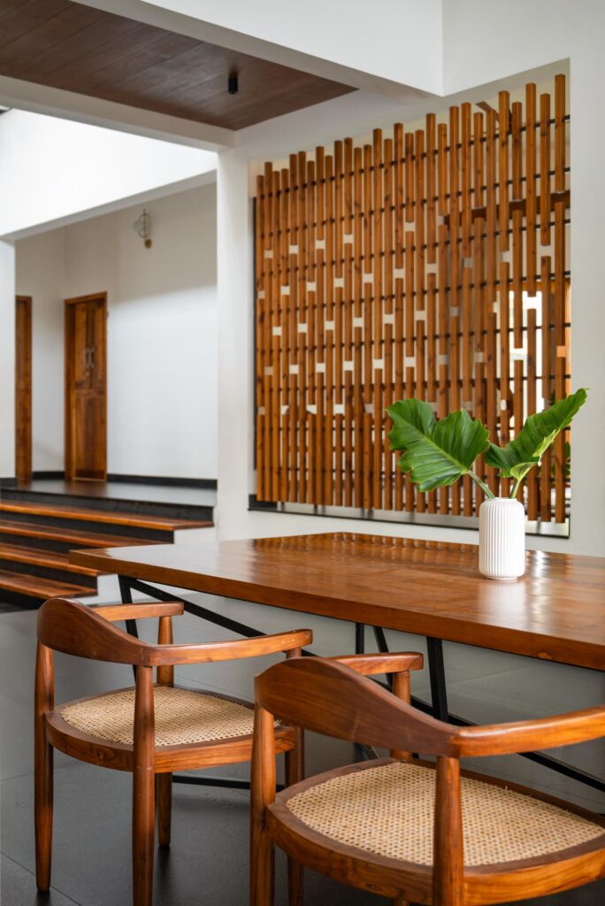 Stone, in particular, shaped the narrative, according to Team Uru. Carefully selected natural stones form the flooring, while laterite stone and granite rock ground the architecture in Kerala’s geological identity. Wooden embellishments carve warmth into the mass, softening edges and reinforcing a rustic character.