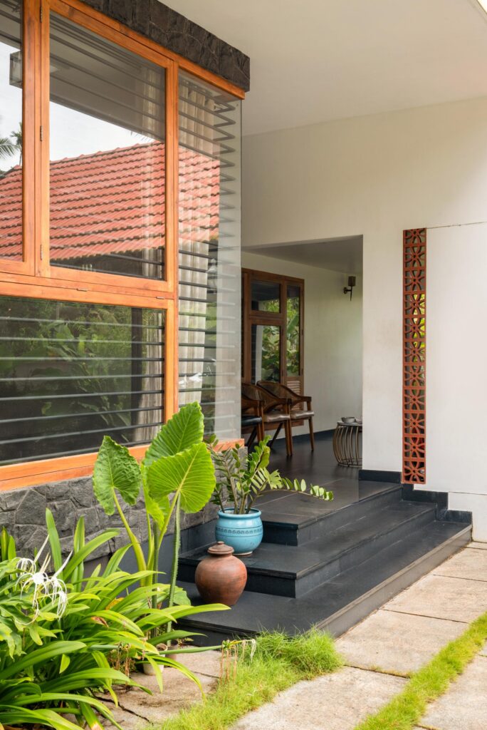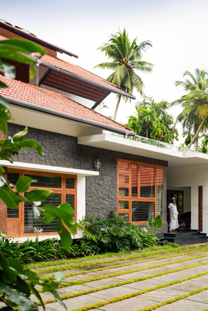 “Malappuram’s warm, humid conditions shaped the architecture from the inception. Cross ventilation is facilitated through aligned openings and internal courts that maintain continuous airflow, and deep roof overhangs and shaded verandahs shield interiors from solar gain and heavy monsoon rains,” says Machilakath.