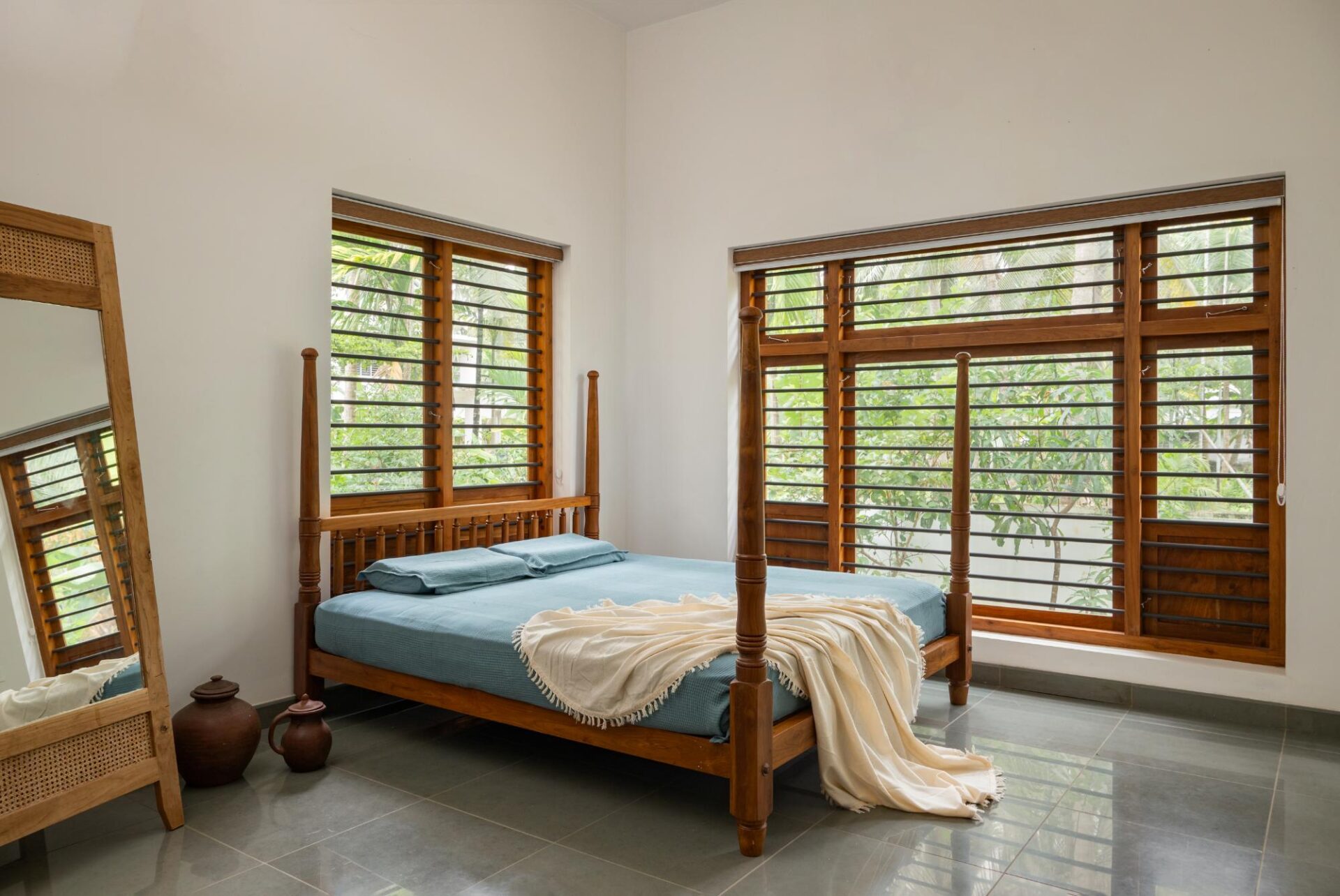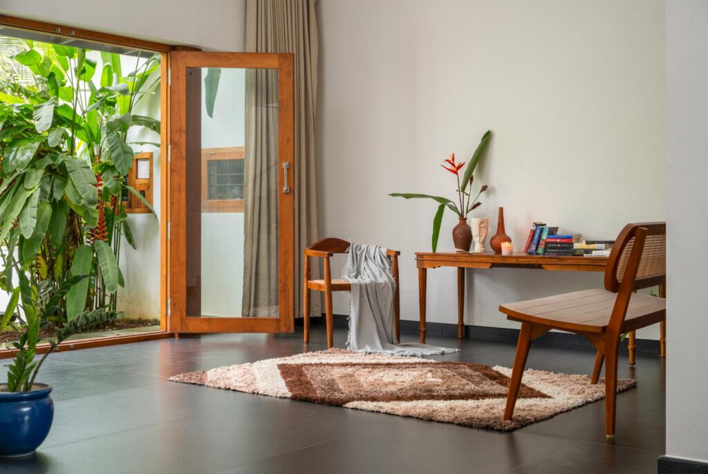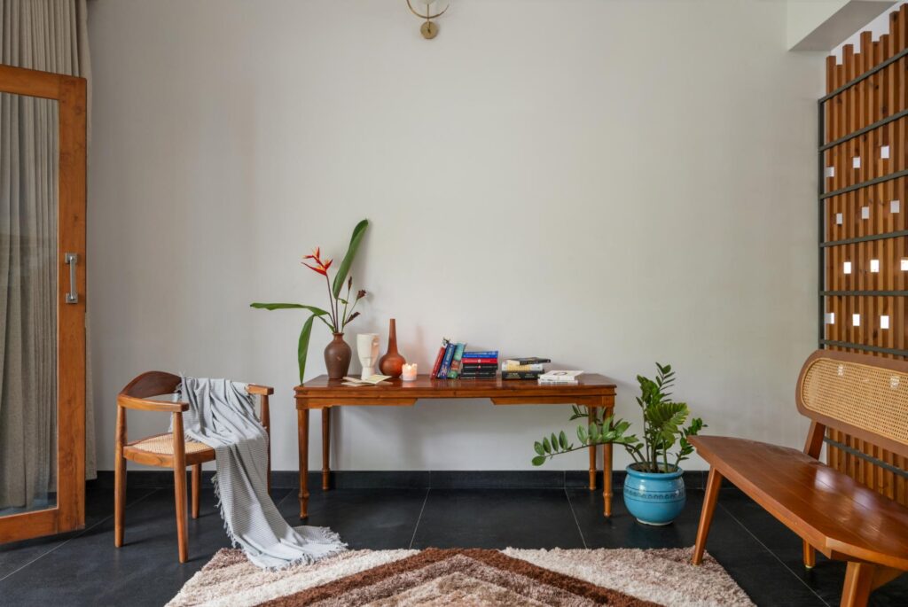 “Complementing the stone are seasoned Nilambur teak and locally sourced hardwoods used for doors, ceilings, and custom furniture. Construction relies on laterite and RCC, ensuring structural integrity with climatic compatibility,” says Machilakath.