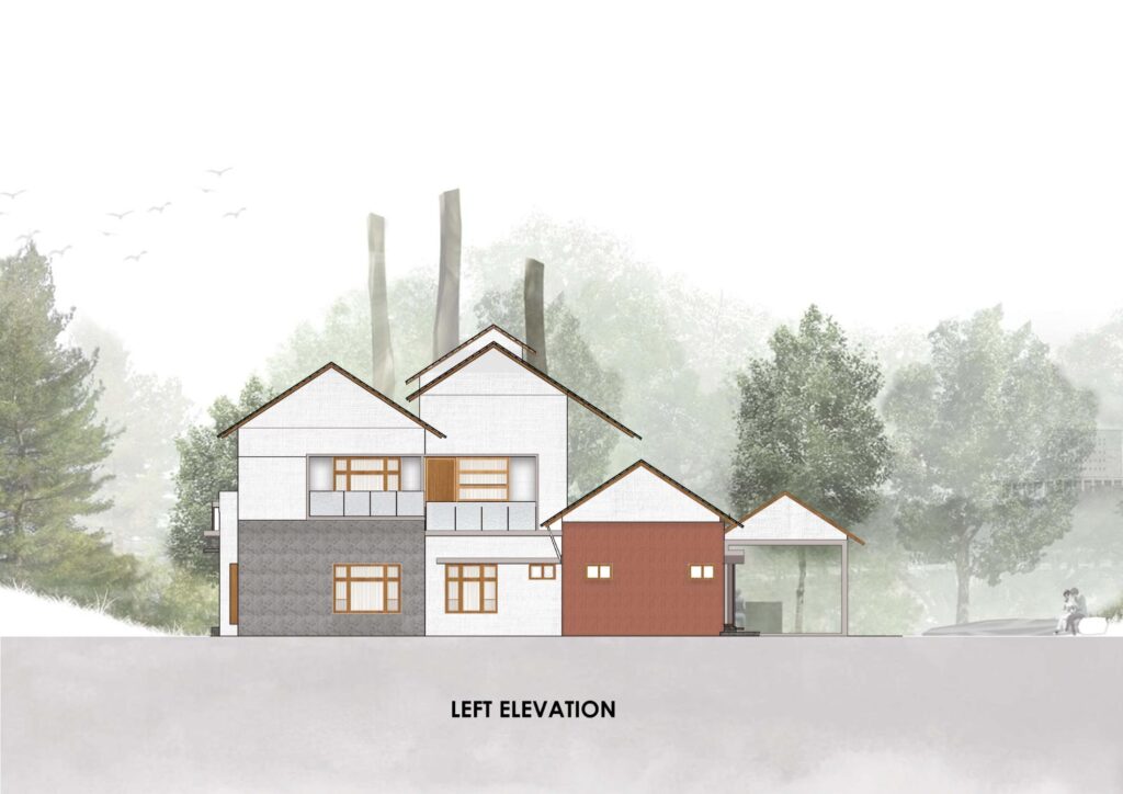 The story began in 2020, when clients Faisal and Shamna approached Uru Consulting with a partially completed ground-floor structure, as the existing design failed to reflect their aspirations for a dream home. When Team Uru visited the site, they encountered a landscape dense with agricultural greenery. Yet the structure stood withdrawn, isolated behind thick foliage.