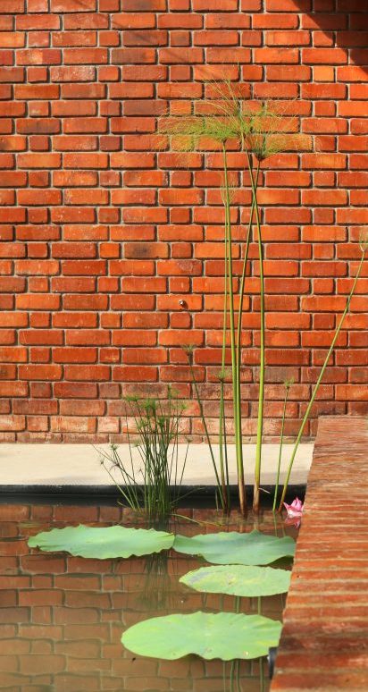 The medical consultancy space and its adjoined guest bedroom form a separate block, spatially separate from the rest of the house. A carefully detailed brick-paved path forms the tectonic cord which connects the two spatial blocks together also doubling up as a performance stage floor for small family gatherings. The quiet reflective brick-edged lotus pool gives a palpable and inviting vibe to this space.